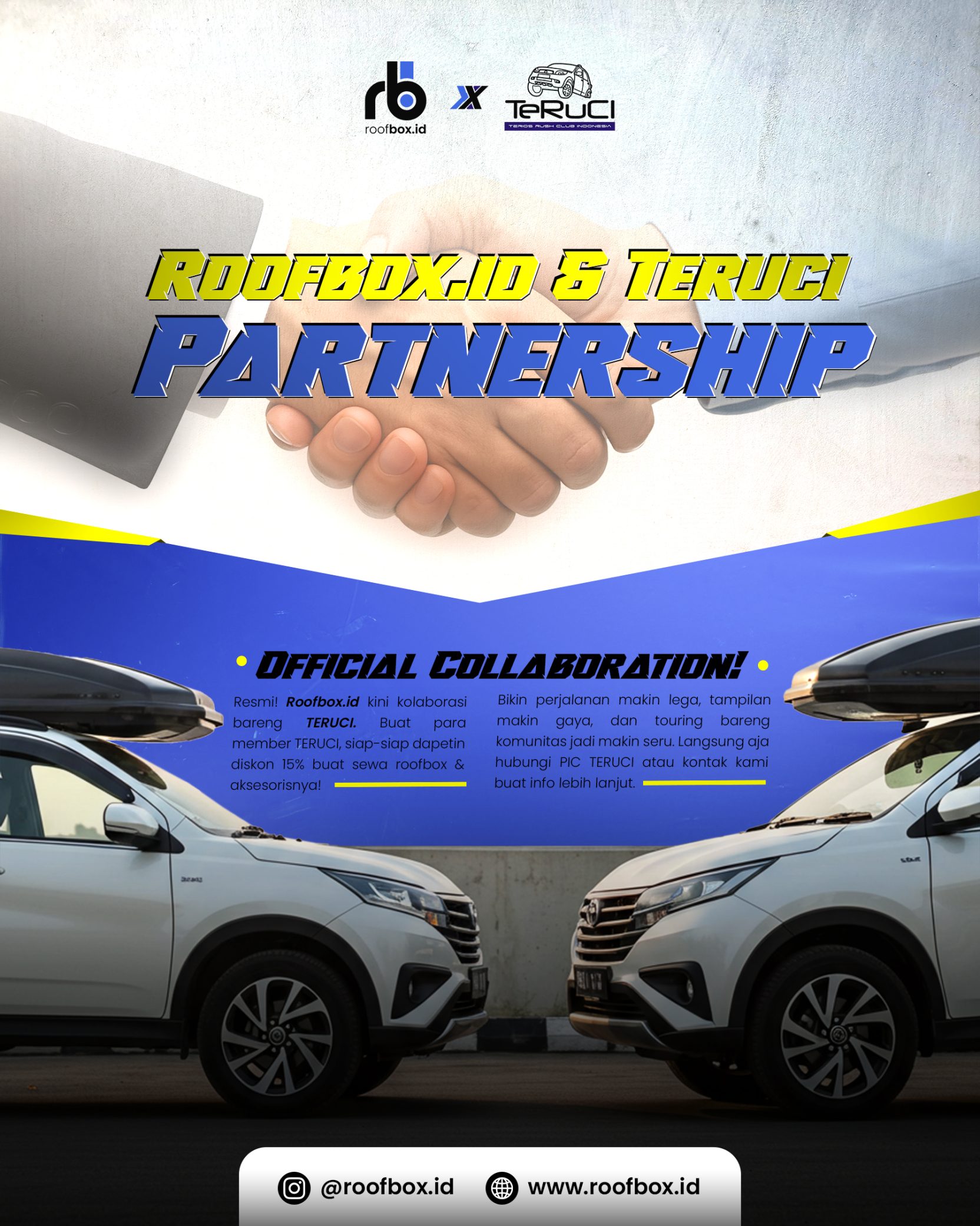 Roofbox.id, penyedia layanan sewa roofbox dan aksesoris mobil terkemuka di Indonesia, resmi menjalin kerja sama dengan komunitas otomotif TERUCI (Terios Rush Club Indonesia). Kolaborasi ini menjadi langkah strategis dalam menghadirkan pengalaman berkendara yang lebih nyaman, aman, dan stylish bagi para pecinta roadtrip dan touring.