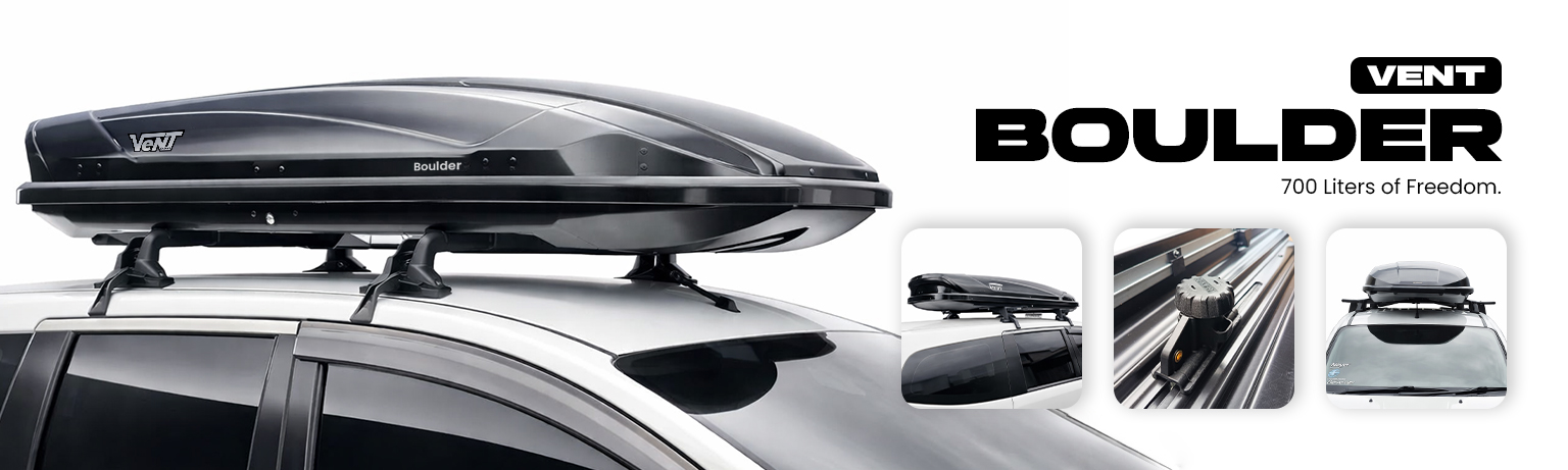 Vent Boulder adalah roof box premium berkapasitas besar yang dirancang untuk perjalanan jarak jauh dengan kebutuhan ruang maksimal. Dengan kapasitas 700 liter, desain aerodinamis, dan finishing Black Glossy yang elegan, Boulder memberikan kombinasi antara volume, durability, dan visual presence yang kuat di atas kendaraan Anda.